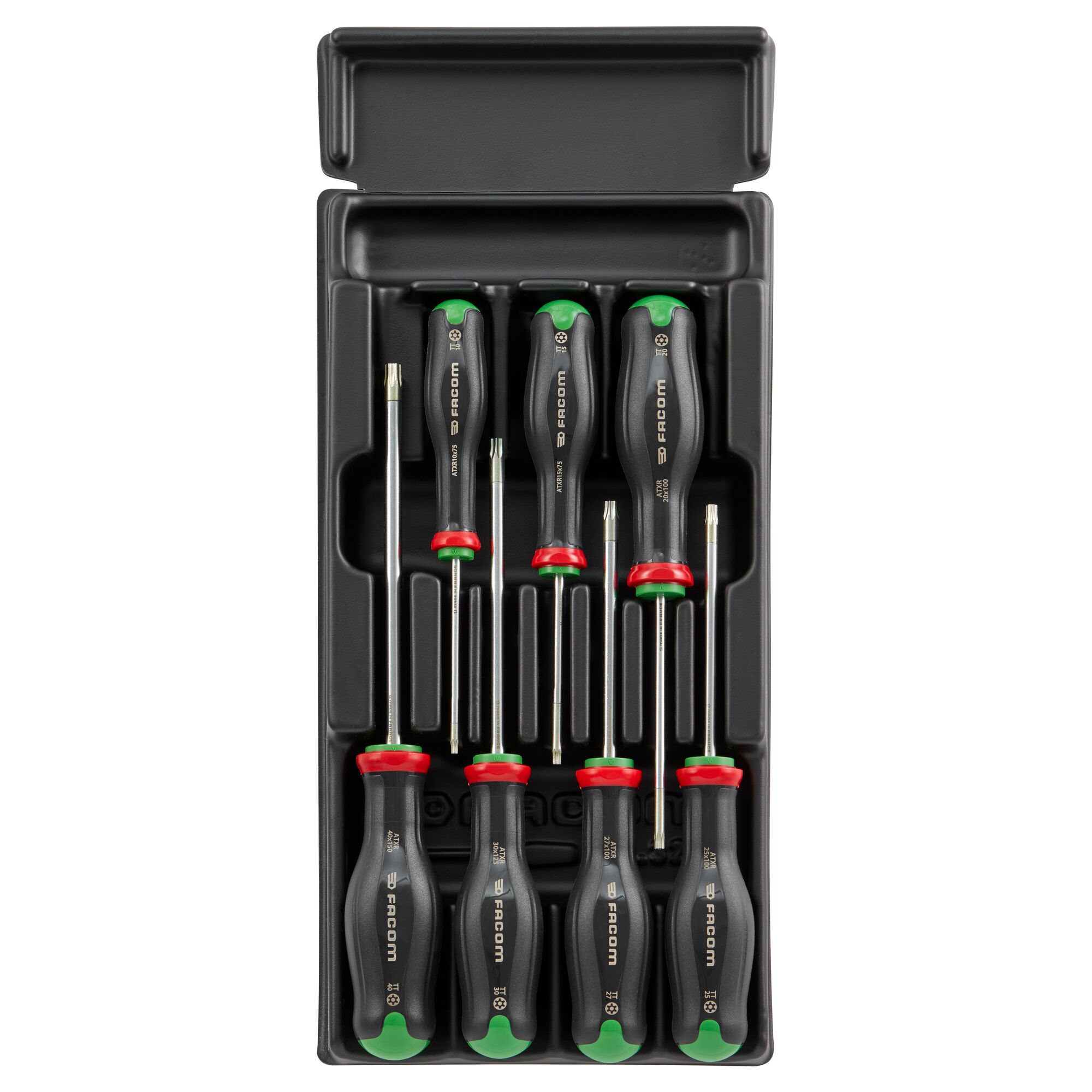This is Screwdriver Set 7 Piece manufactured by Facom. The manufacturer part number is MOD.ATXRPB. This standard screwdriver set screwdriver offers extreme comfort and a non-slip grip. The product consists of 7 pieces.