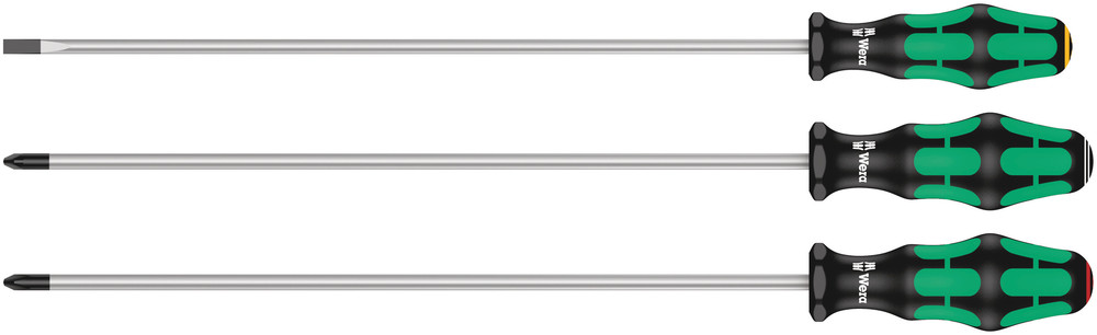 This is Phillips; Pozidriv; Slotted Screwdriver Set 3-Piece manufactured by Wera. The manufacturer part number is 05347735002. This standard screwdriver set screwdriver offers extreme comfort and a non-slip grip. The built-in exquisite tip is a phillips; pozidriv; slotted tip. The product consists of 3 pieces.