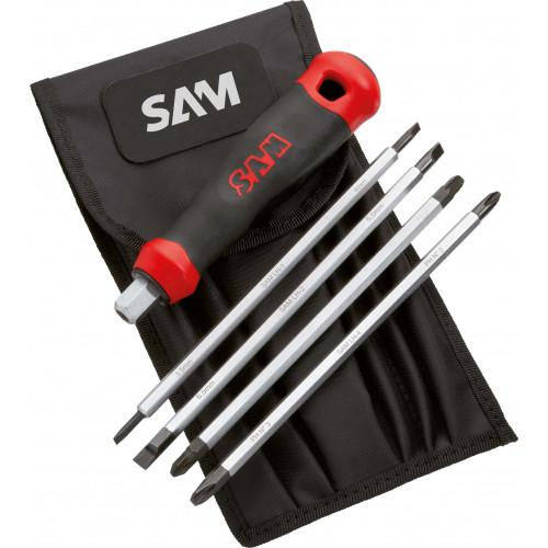 This is TR Interchangeable Screwdriver Set manufactured by SAM. The manufacturer part number is TR-9. This interchangeable standard screwdriver set screwdriver offers extreme comfort and a non-slip grip.