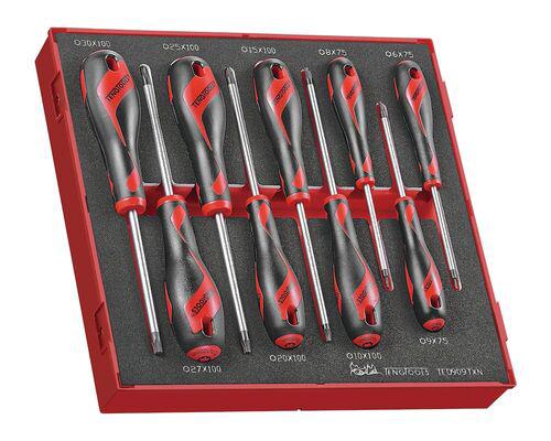 This is Slotted Screwdriver Set 9-Piece manufactured by Teng Tools. The manufacturer part number is TED909TXN. This standard screwdriver set screwdriver offers extreme comfort and a non-slip grip. The built-in exquisite tip is a slotted tip. The product consists of 9 pieces.