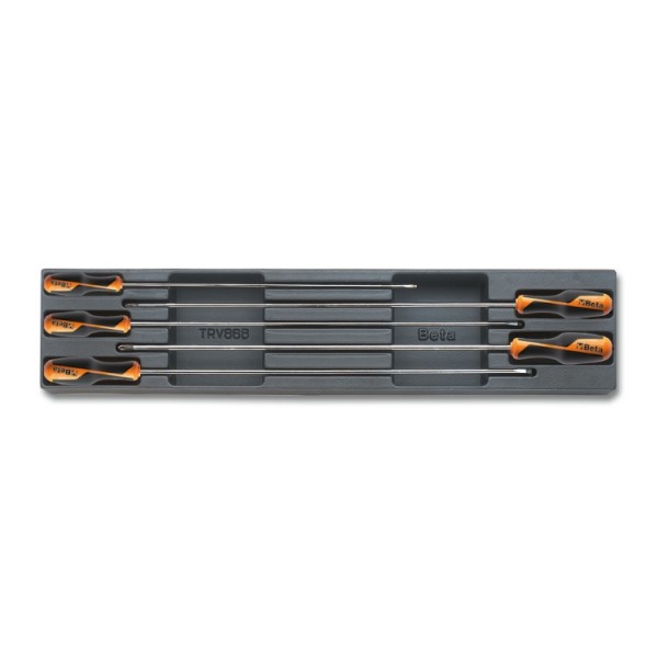 This is Phillips; Slotted Screwdriver Set 5-Piece manufactured by BETA. The manufacturer part number is T209. This standard screwdriver set screwdriver offers extreme comfort and a non-slip grip. The built-in exquisite tip is a phillips; slotted tip. The product consists of 5 pieces.