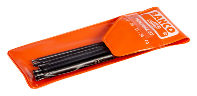 This is Hex Torx 5-Piece manufactured by Bahco. The manufacturer part number is 1996TORX/5T. This torx screwdriver offers extreme comfort and a non-slip grip. The built-in exquisite tip is a hex tip. The product consists of 5 pieces.