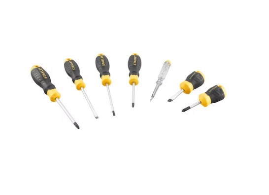 This is Flared Parallel Phillips Screwdriver Sets 7-Piece manufactured by Stanley. The manufacturer part number is STHT16166-0. This screwdriver sets screwdriver offers extreme comfort and a non-slip grip. The built-in exquisite tip is a flared, parallel, phillips tip. The product consists of 7 pieces.