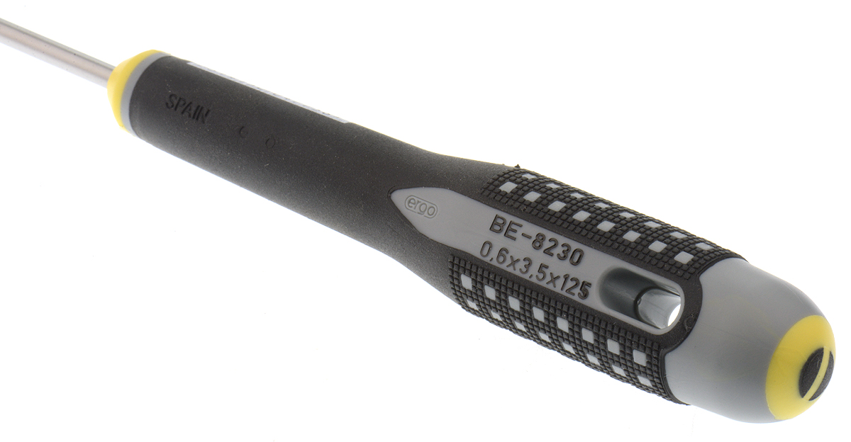The Bahco BE-8230 is a meticulously crafted slotted screwdriver renowned for its robust construction and ergonomic design. Forged from high-grade alloy steel, this tool promises excellent durability and wear-and- tear resistance. Its 125mm blade is precisely engineered to fit slotted screws with unmatched accuracy, ensuring efficient and reliable screw driving. The screwdriver's handle is enveloped in a soft rubber grip, providing users with comfort and reducing hand fatigue. This blend of strength, precision, and user comfort makes the Bahco BE-8230 an indispensable tool in any toolkit.