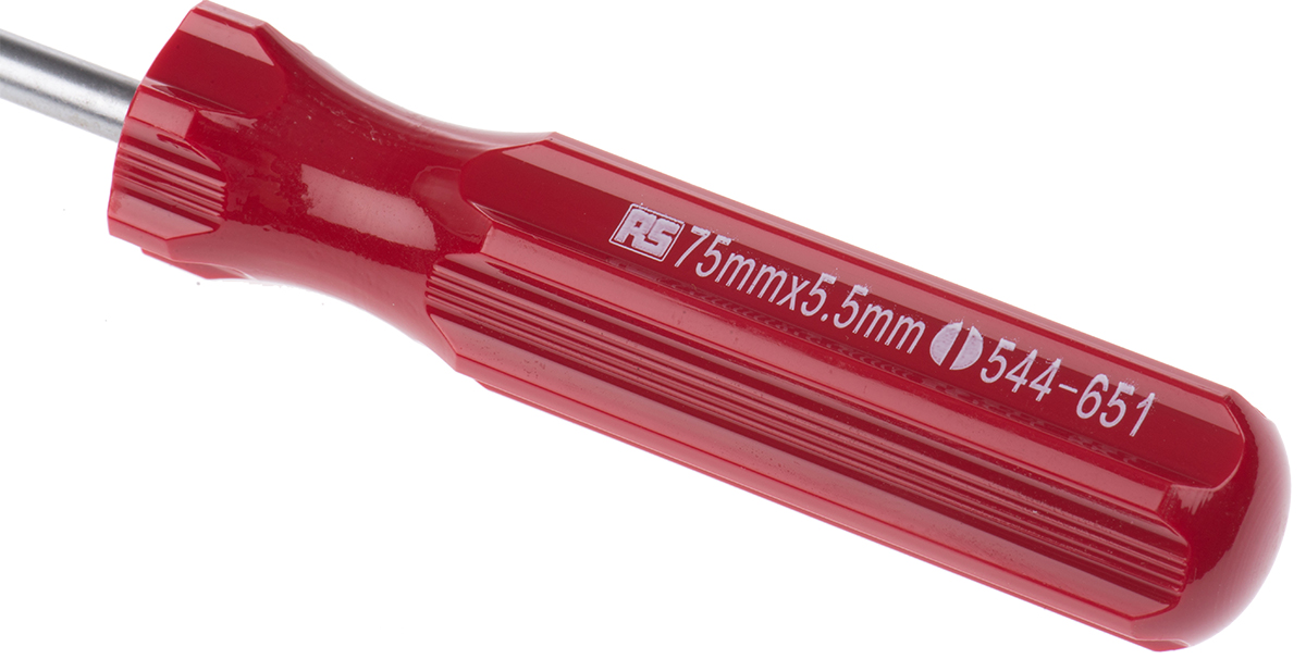 This is 3 in Chrome Vanadium Steel Standard Screwdriver Parallel 3/16 in Tip Cellulose Acetate manufactured by RS Pro. The manufacturer part number is 544-651. This standard screwdriver screwdriver offers extreme comfort and a non-slip grip. The tip is 3/16 in in size. Its comfortable handle is manufactured from durable cellulose acetate material. In addition, it has a bead blasted; lacquer blade finish . The blade has a length of 75 mm. The built-in exquisite tip is a slotted tip. In addition, its blade is made up of chrome vanadium steel material .
