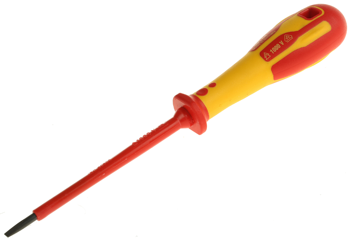 This is 100 mm Chrome Vanadium Molybdenum Steel VDE Screwdriver Slotted 3.5 mm Tip Bi-material manufactured by CK. The manufacturer part number is T49144-035. VDE/1000V Approval Options - yes. This insulated screwdriver screwdriver offers extreme comfort and a non-slip grip. The tip is 3,5 mm in size. Its comfortable handle is manufactured from durable bi-material material. The blade has a length of 100 mm. The built-in exquisite tip is a slotted tip. In addition, its blade is made up of chrome vanadium molybdenum steel material .