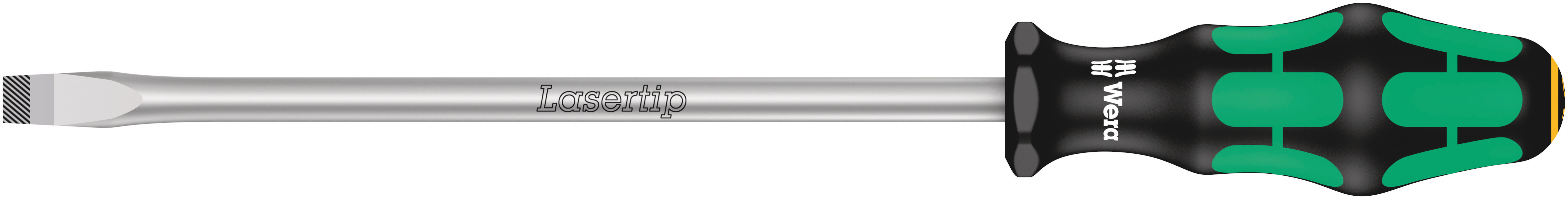 This is 200 mm Electrical Screwdriver Slotted 10 mm Tip manufactured by Wera. The manufacturer part number is 05110104001. The tip is 10 mm in size. This standard screwdriver screwdriver offers extreme comfort and a non-slip grip. In addition, it has a chrome blade finish . The blade has a length of 200 mm. It has an overall length of 112 mm. The built-in exquisite tip is a slotted tip.