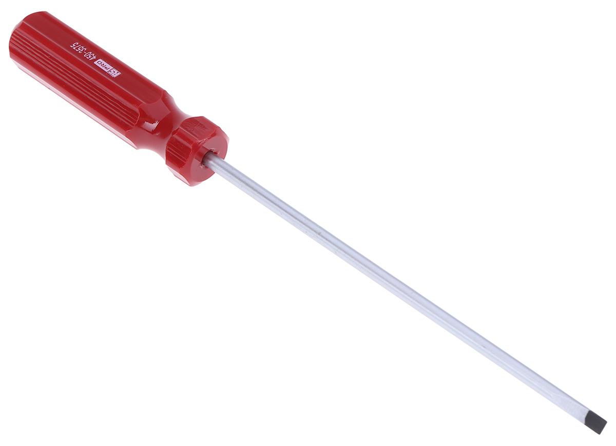 This is 100 mm Chrome Vanadium Steel Standard Screwdriver Parallel 3 mm Tip Cellulose Acetate manufactured by RS Pro. The manufacturer part number is 450-3575. This standard screwdriver screwdriver offers extreme comfort and a non-slip grip. The tip is 3 mm in size. Its comfortable handle is manufactured from durable cellulose acetate material. In addition, it has a bead blasted; lacquer blade finish . The blade has a length of 100 mm. It has an overall length of 155 mm. The built-in exquisite tip is a slotted tip. In addition, its blade is made up of chrome vanadium steel material .