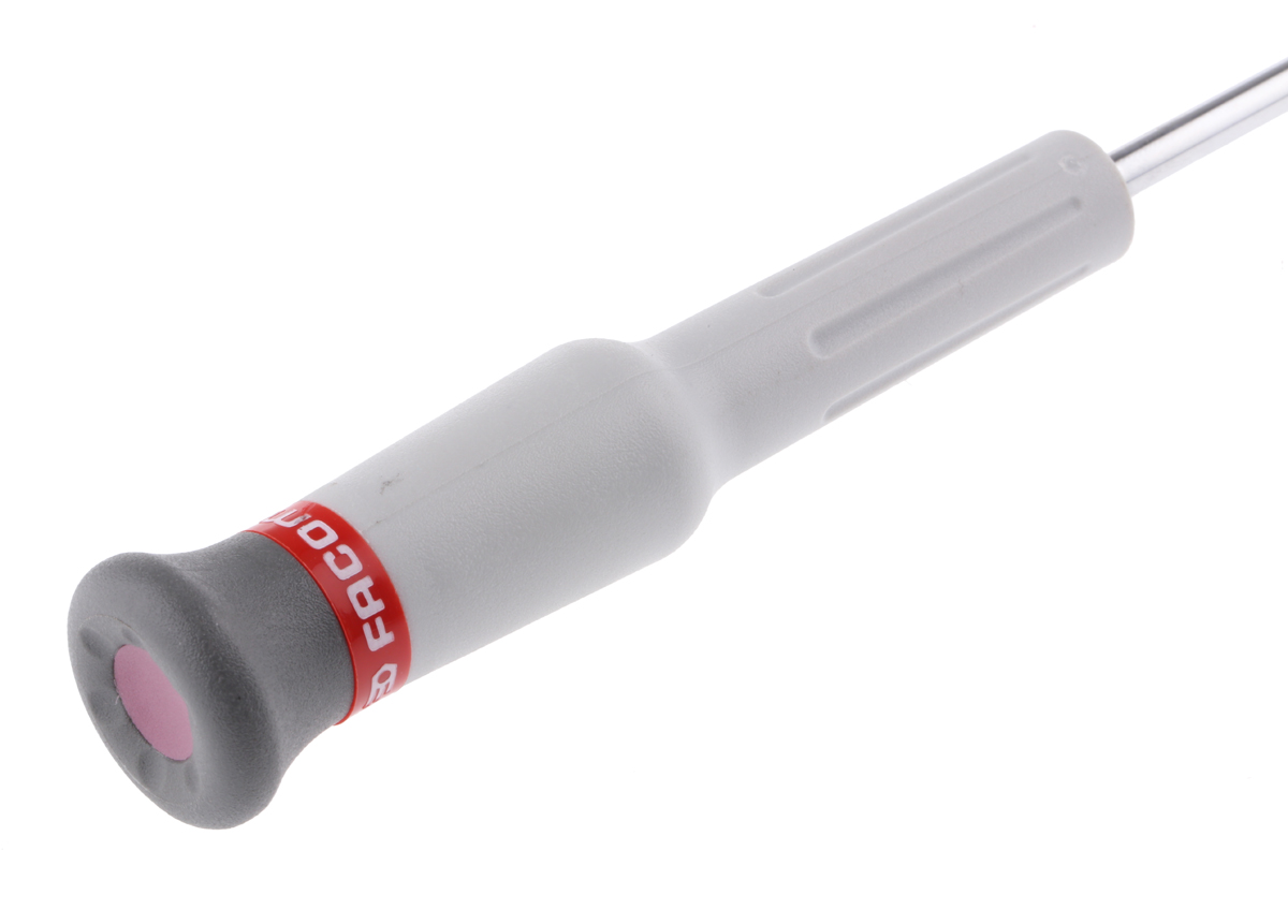 This is 75 mm Electronics Screwdriver Slotted 4 mm Tip Bi-material manufactured by Facom. The manufacturer part number is AEF.4X75. This standard screwdriver screwdriver offers extreme comfort and a non-slip grip. The tip is 4 mm in size. Its comfortable handle is manufactured from durable bi-material material. In addition, it has a chrome blade finish . The blade has a length of 75 mm. It has an overall length of 168 mm. The built-in exquisite tip is a slotted tip.
