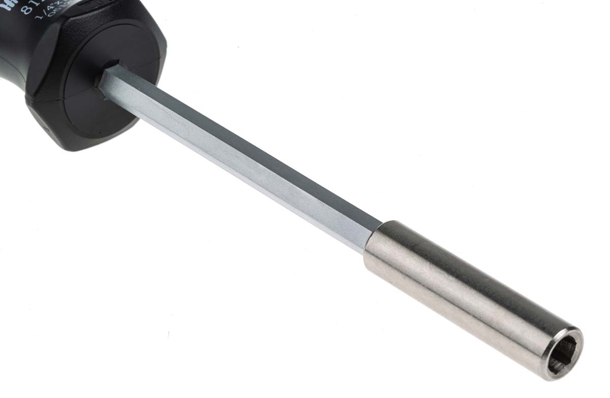 This is 120 mm Electrical Bit Driver Hexagon Insert Bit 1/4 in Tip manufactured by Wera. The manufacturer part number is 05051205001. The blade has a length of 120 mm. This bit holder screwdriver screwdriver offers extreme comfort and a non-slip grip. The tip is 1/4 in in size. The built-in exquisite tip is a hexagon tip. It has an overall length of 232 mm.