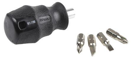 This is Interchangeable Screwdriver Flat; Phillips PH1; PH2; 4.5 mm; 5.5 mm Tip manufactured by RS Pro. The manufacturer part number is 255-001. This interchangeable screwdriver offers extreme comfort and a non-slip grip. The tip is ph1; ph2; 4.5 mm; 5.5 mm in size. The built-in exquisite tip is a phillips, slotted tip. It has an overall length of 63 mm.