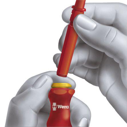 This is 154 mm Electricians Screwdriver Blade Pozidriv PZ2 Tip manufactured by Wera. The manufacturer part number is 05003452050. VDE/1000V Approval Options - yes. The tip is pz2 in size. This electricians screwdriver offers extreme comfort and a non-slip grip. In addition, it has a zinc phosphate blade finish . The blade has a length of 154 mm. The built-in exquisite tip is a pozidriv tip.