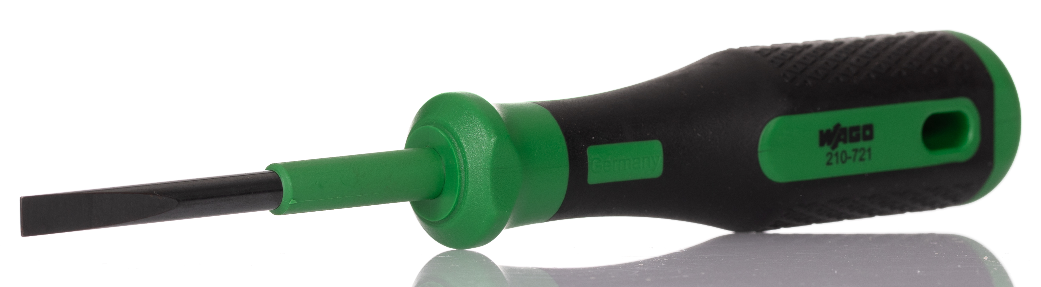 The Wago 210-721 is designed for accurate and reliable operation in electrical installations. Its ergonomic handle confirms a comfortable grip, allowing precise torque control for fastening or loosening screws in terminal blocks and electrical components. Choose the Wago 210-721 screwdriver to add a trusted tool to your electrical toolkit. With its robust build and ergonomic layout, it guarantees precise, efficient, and reliable performance across all your electrical projects.