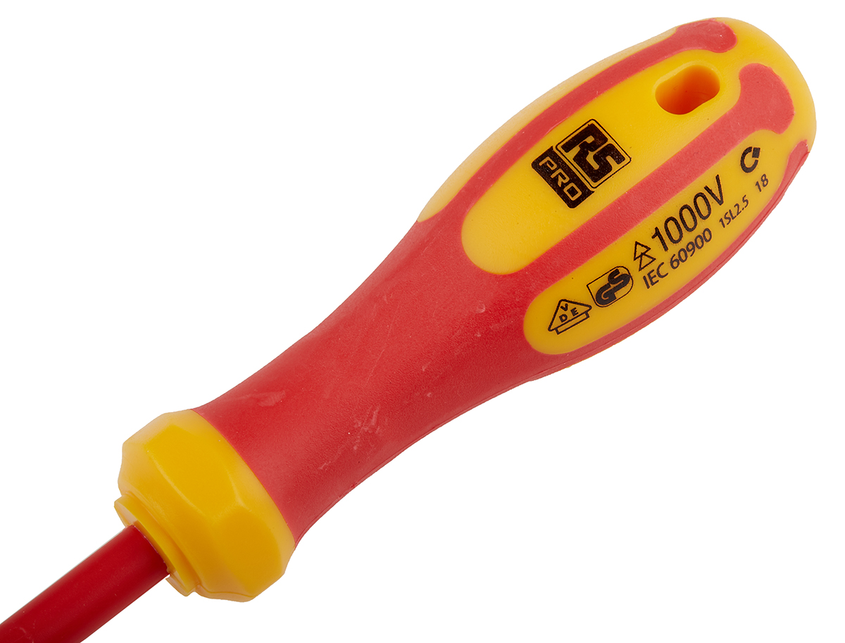 This is 75 mm Chrome Vanadium Molybdenum Steel Insulated Screwdriver Slotted 0.4 x 2.5 mm Tip Plastic manufactured by RS Pro. The manufacturer part number is 125-3078. VDE/1000V Approval Options - yes. This insulated screwdriver screwdriver offers extreme comfort and a non-slip grip. The tip is 2.5 x 0.4 mm in size. Its comfortable handle is manufactured from durable plastic material. In addition, it has a phosphate blade finish . The blade has a length of 75 mm. It has an overall length of 165 mm. The built-in exquisite tip is a slotted tip. In addition, its blade is made up of chrome vanadium molybdenum steel material .