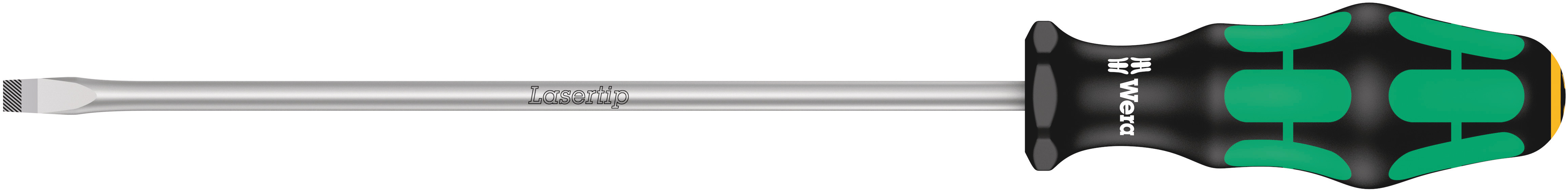 This is Slotted Insulated Screwdriver 6.5 mm Tip 200 mm manufactured by Wera. The manufacturer part number is 007621. The blade has a length of 200 mm. The tip is 6.5 mm in size. It has an overall length of 305 mm. The built-in exquisite tip is a flat tip. In addition, it has a chrome blade finish .