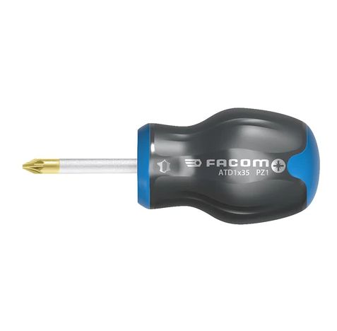 This is Pozidriv Protwist Screwdriver PZ1 Tip manufactured by Facom. The manufacturer part number is ATD1X25. The blade has a length of 25 mm. This stubby screwdriver screwdriver offers extreme comfort and a non-slip grip. The tip is pz1 in size. The built-in exquisite tip is a pozidriv tip. It has an overall length of 81 mm.