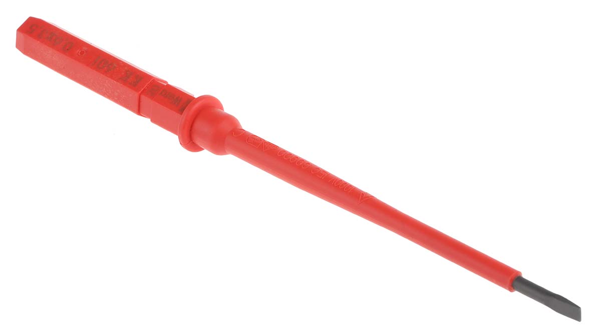 This is Slotted Interchangeable Screwdriver 3.5 x 0.6 mm Tip VDE 1000V Approved manufactured by Wera. The manufacturer part number is 5003402001. VDE/1000V Approval Options - yes. The tip is 3.5 x 0.6 mm in size. This insulated screwdriver blade screwdriver offers extreme comfort and a non-slip grip. In addition, it has a zinc phosphate with black point blade finish . The blade has a length of 154 mm. It has an overall length of 154 mm. The built-in exquisite tip is a slotted tip.