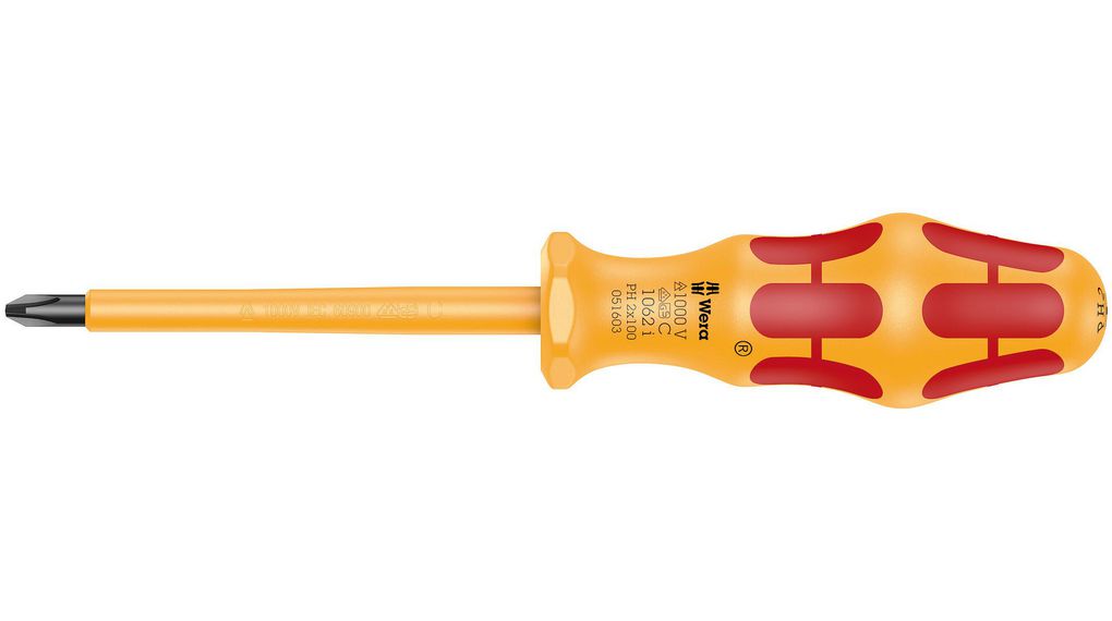 This is Phillips Insulated Screwdriver PH2 Tip VDE/1000V manufactured by Wera. The manufacturer part number is 05051603001. VDE/1000V Approval Options - yes. This insulated screwdriver screwdriver offers extreme comfort and a non-slip grip. The tip is ph2 in size. The built-in exquisite tip is a phillips tip.
