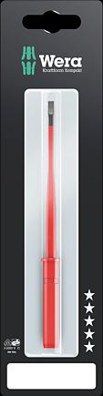 This is Slotted Insulated Screwdriver Blade VDE/1000V manufactured by Wera. The manufacturer part number is 05004408001. VDE/1000V Approval Options - yes. This insulated screwdriver blade screwdriver offers extreme comfort and a non-slip grip. The built-in exquisite tip is a slotted tip.