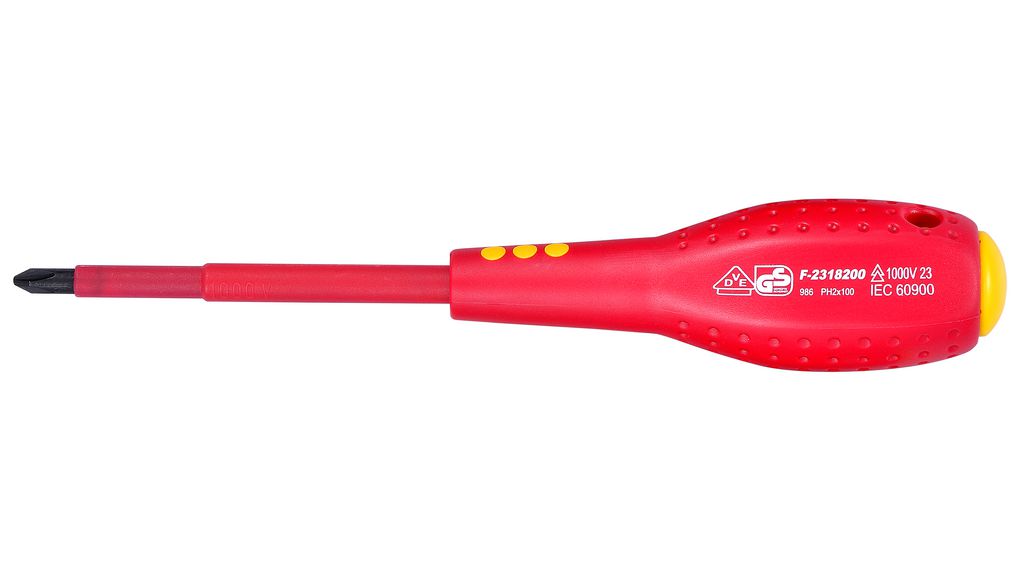 This is Phillips Phillips PH2 Tip 100 mm Blade VDE/1000V manufactured by RND. The manufacturer part number is RND 550-00388. VDE/1000V Approval Options - yes. The tip is ph2 in size. This phillips screwdriver offers extreme comfort and a non-slip grip. It has a model number rnd 550-00388. The blade has a length of 100 mm. The built-in exquisite tip is a phillips tip.