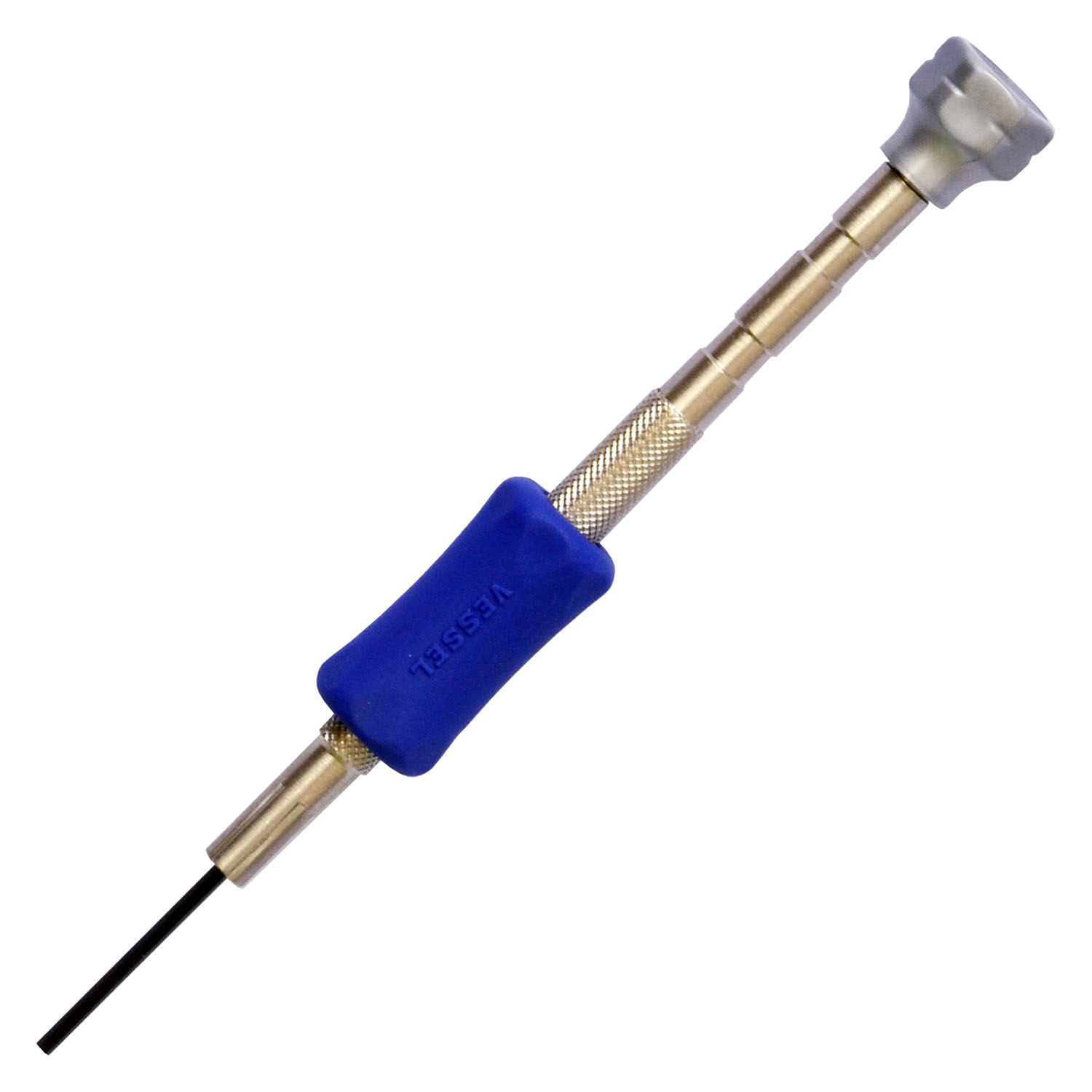 This is Hex Precision Screwdriver H1.27 Tip 18 mm Blade 98 mm Overall manufactured by Vessel. The manufacturer part number is TD-53 H1.27. The tip is h1.27 in size. This precision screwdriver screwdriver offers extreme comfort and a non-slip grip. It has a model number td-53 h1.27. The blade has a length of 18 mm. It has an overall length of 98 mm. The built-in exquisite tip is a hex tip.