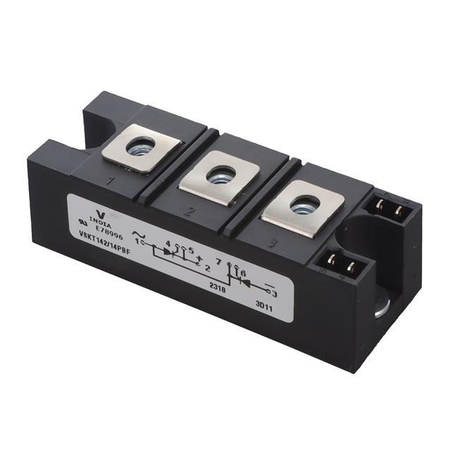This is manufactured by Vishay General Semiconductor - Diodes Division. The manufacturer part number is VS-VSKT142/14PBF. It is assigned with possible HTSUS value of 8541.30.0080. The product is rohs3 compliant. It has an off state voltage of 1.4 kv. While the maximum voltage - gate trigger includes 2.5 v. The product has -40°c ~ 125°c (tj) operating temperature range. Moreover, the product comes in int-a-pak. The maximum hold current is 200 ma. In addition, it is reach unaffected. The maximum 310 a of on state current. It has a series connection - all scrs structure. It is shipped in bulk package . Its typical moisture sensitivity level is 1 (unlimited). The maximum gate triggering current is 150 ma. It has a long 17 weeks standard lead time. Non rep. current with 50, 60Hz surge included 4500a, 4712a. The product is available in chassis mount configuration. Maximum on state current of 140 a. It consists of 2 scrs . Moreover, it corresponds to vskt142, a base product number of the product. The product is designated with the ear99 code number.