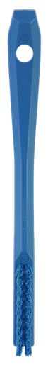 This is Blue 15mm PET Extra Hard Scrub Brush for Various Applications manufactured by Vikan. The manufacturer part number is 44013. The product has a high-quality detail brush type brush . The product is food processing safe no . Its bristle is 15mm in length . It has a decent blue colour. The overall width of the product is about 20mm . Applications Information involves engineering cleaning. The product's depth is about 40mm . Its bristle is made using high-quality pet material . It is extra hard .