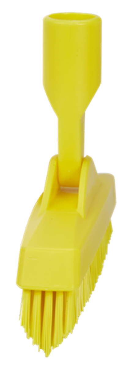 This is Crevice Scrub 225mm Extra Stiff Yello manufactured by Vikan. The manufacturer part number is 70406. The product has a high-quality crevice scrub brush type brush . The product is food processing safe yes . Its bristle is 40mm in length . It has a decent yellow colour. The overall width of the product is about 225mm . Applications Information involves floors. The product's depth is about 35mm . Its bristle is made using high-quality polyester material . It is very hard .