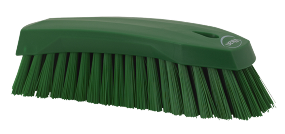 This is Green 36mm Hard Scrub Brush manufactured by Vikan. The manufacturer part number is 38902. The product has a high-quality hand brush type brush . The product is food processing safe yes . Its bristle is 36mm in length . It has a decent green colour. The overall width of the product is about 200mm . Applications Information involves multipurpose cleaning. The product's depth is about 70mm . Its bristle is made using high-quality polyester material . It is hard .