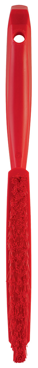 This is Narrow Hand Brush with short handle 300 manufactured by Vikan. The manufacturer part number is 41954. The product has a high-quality hand brush type brush . The product is food processing safe yes . Its bristle is 33mm in length . It has a decent red colour. The overall width of the product is about 20mm . Applications Information involves food industry, general cleaning. The product's depth is about 300mm . Its bristle is made using high-quality pet material . It is extra hard .