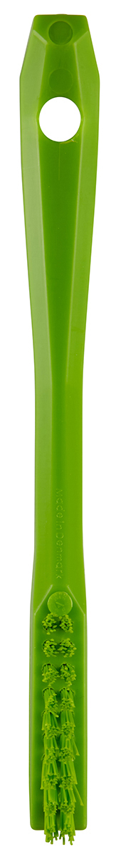 This is Detail Brush 205 mm Very hard Lime manufactured by Vikan. The manufacturer part number is 440177. The product has a high-quality detail brush type brush . The product is food processing safe yes . Its bristle is 15mm in length . It has a decent green colour. The overall width of the product is about 20mm . Applications Information involves engineering cleaning. The product's depth is about 205mm . Its bristle is made using high-quality pet material . It is extra hard .