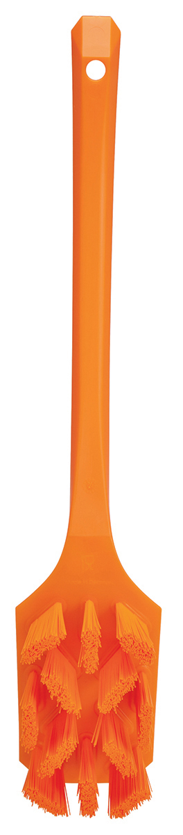 This is UST Hand Brush w/long Handle 395 mm Ha manufactured by Vikan. The manufacturer part number is 41967. The product has a high-quality hand brush type brush . Its bristle is 37mm in length . It has a decent orange colour. Applications Information involves industrial cleaning. Its bristle is made using high-quality pet material . It is hard .