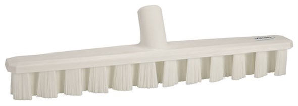 This is UST Deck Scrub 400 mm Hard White manufactured by Vikan. The manufacturer part number is 70645. The product has a high-quality deck brush type brush . Its bristle is 37mm in length . It has a decent white colour. Applications Information involves abattoirs. Its bristle is made using high-quality polyester, polypropylene, stainless steel material . It is hard .