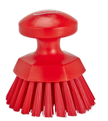 This is Hard Bristle Red Hand Brush 110mm bristle length Polyester Polypropylene Stainless Steel bristle material manufactured by Vikan. The manufacturer part number is 38854. Applications Information involves food industry. It has a decent red colour. Its bristle is made using high-quality polyester, polypropylene, stainless steel material . Its bristle is 110mm in length . It is hard .
