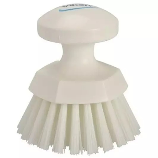 This is Hard Bristle White Hand Brush 110mm bristle length Polyester Polypropylene Stainless Steel bristle material manufactured by Vikan. The manufacturer part number is 38855. The product has a high-quality round hand scrub type brush . It has an overall width of 110mm. Applications Information involves food and industrial applications. Its bristle is 110mm in length . It is hard . Similarly, the product has 110 mm of overall depth. It is food safe yes . hand brush is a versatile product designed to provide user-defined applications. Its handle is of white colour .
