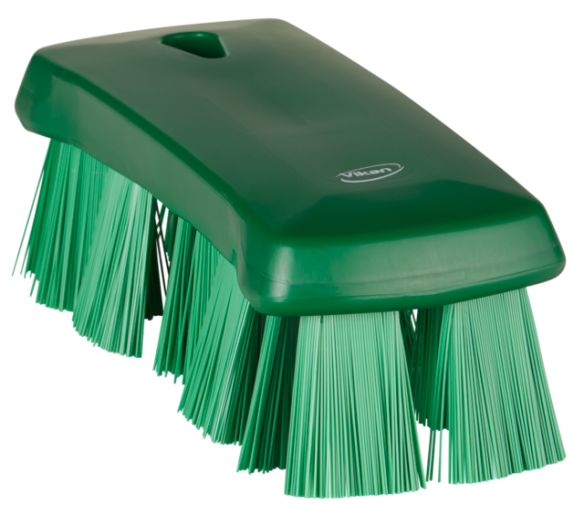 This is Hard Bristle Green Hand Brush 176mm bristle length Polyester bristle material manufactured by Vikan. The manufacturer part number is 38912. Applications Information involves industrial cleaning. It has a decent green colour. Its bristle is made using high-quality polyester material . Its bristle is 176mm in length . It is hard .