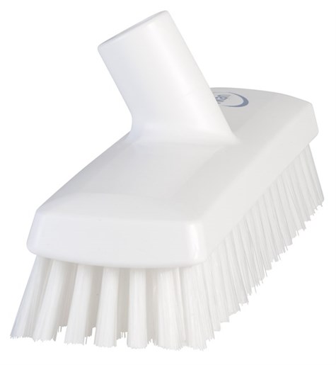 This is Medium Bristle White Deck Brush 32mm bristle length Polyester Polypropylene Stainless Steel bristle material manufactured by Vikan. The manufacturer part number is 70435. Applications Information involves abattoirs. It has a decent white colour. Its bristle is made using high-quality polyester, polypropylene, stainless steel material . Its bristle is 32mm in length . It is medium .
