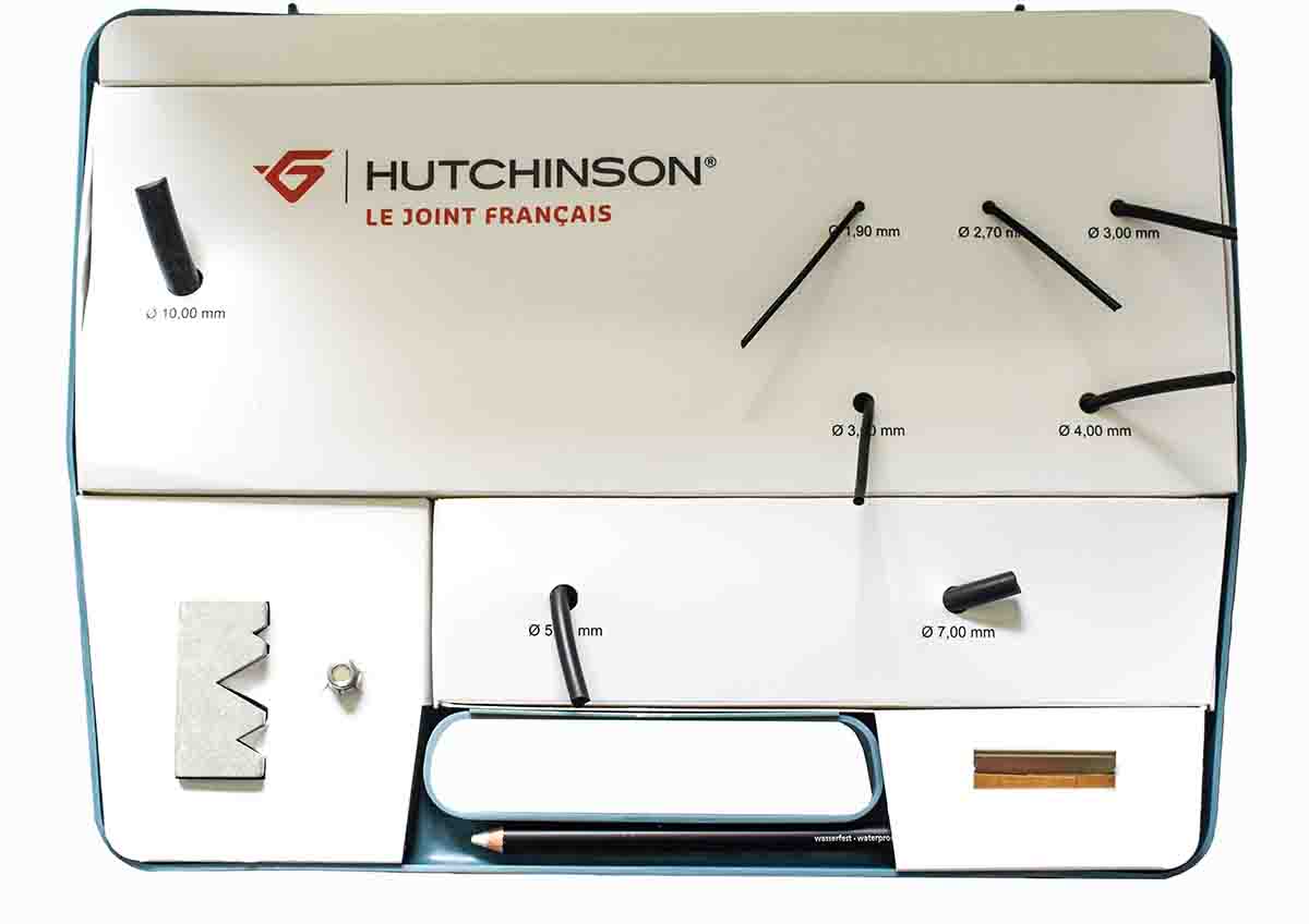 This is Splicing Kits NBR Kit Contents Aluminium Anvil Blade Cords Glue Tube White Pencil manufactured by Hutchinson Le Joint Français. The manufacturer part number is 199001. The product is made from highly stable and reliable nbr. It comes in splicing kits configuration. This versatile kit contents include aluminium anvil, blade, cords, glue tube, white pencil components.