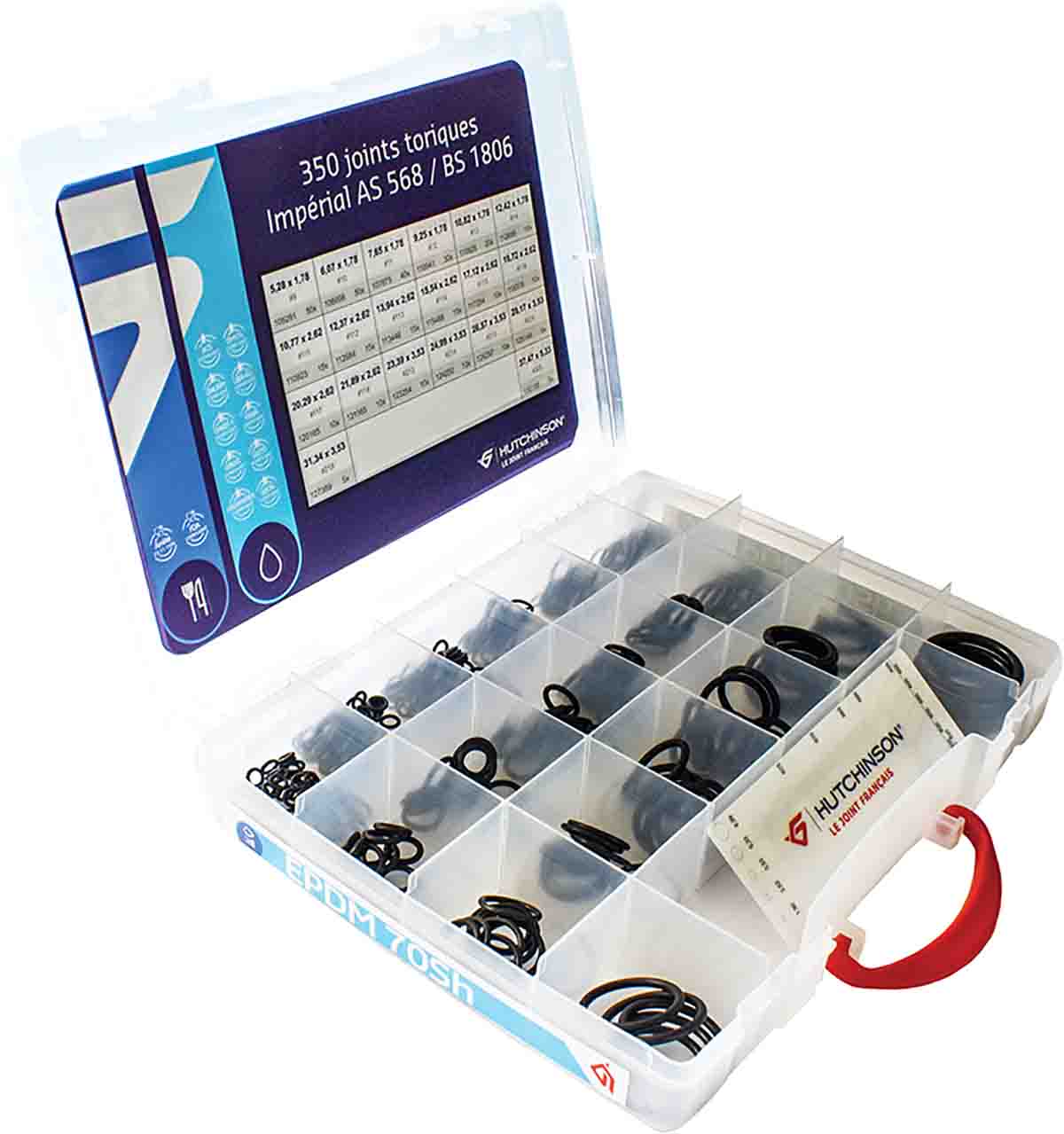 This is O-Ring Kits EPDM Kit Contents O-Rings manufactured by Hutchinson Le Joint Français. The manufacturer part number is 199072. The product is made from highly stable and reliable epdm. It comes in o-ring kits configuration. This versatile kit contents include o-rings components.