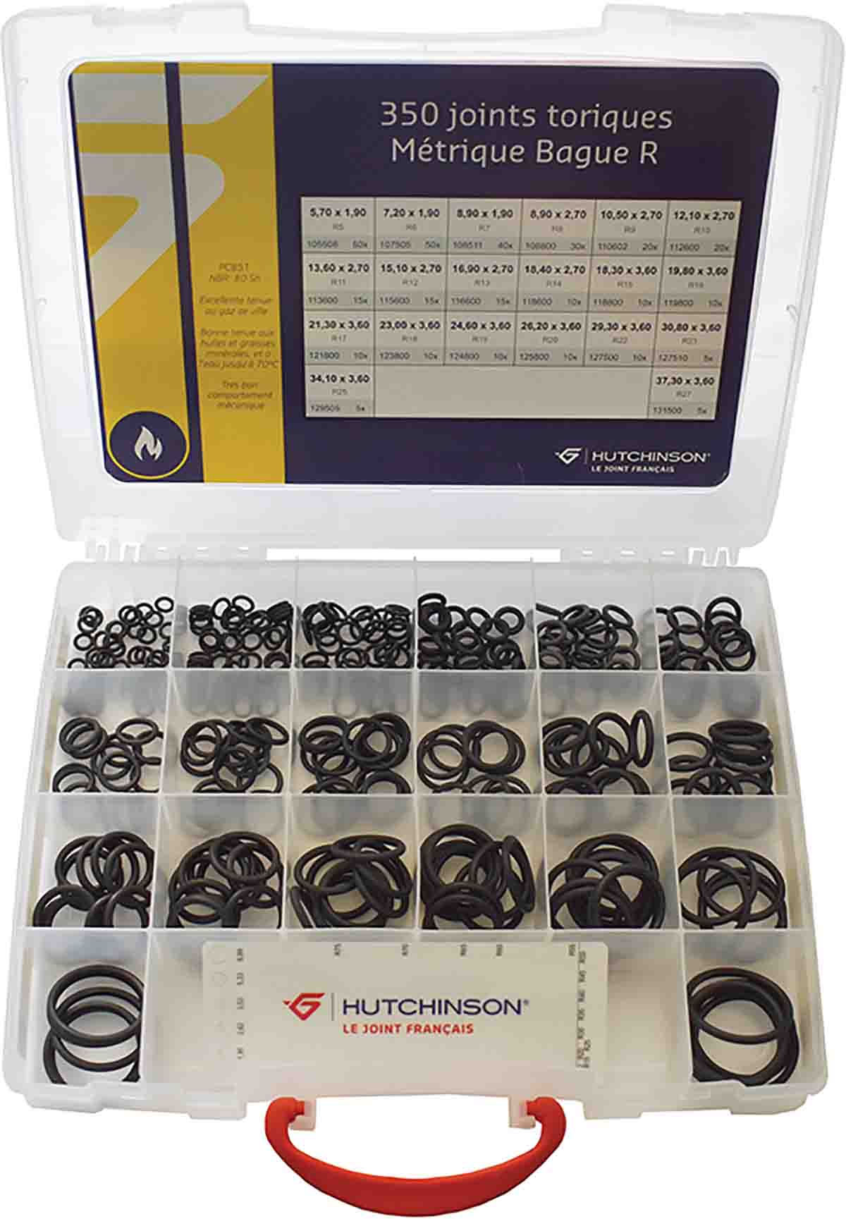 This is O-Ring Kits NBR Kit Contents O-Rings manufactured by Hutchinson Le Joint Français. The manufacturer part number is 199081. The product is made from highly stable and reliable nbr. It comes in o-ring kits configuration. This versatile kit contents include o-rings components.