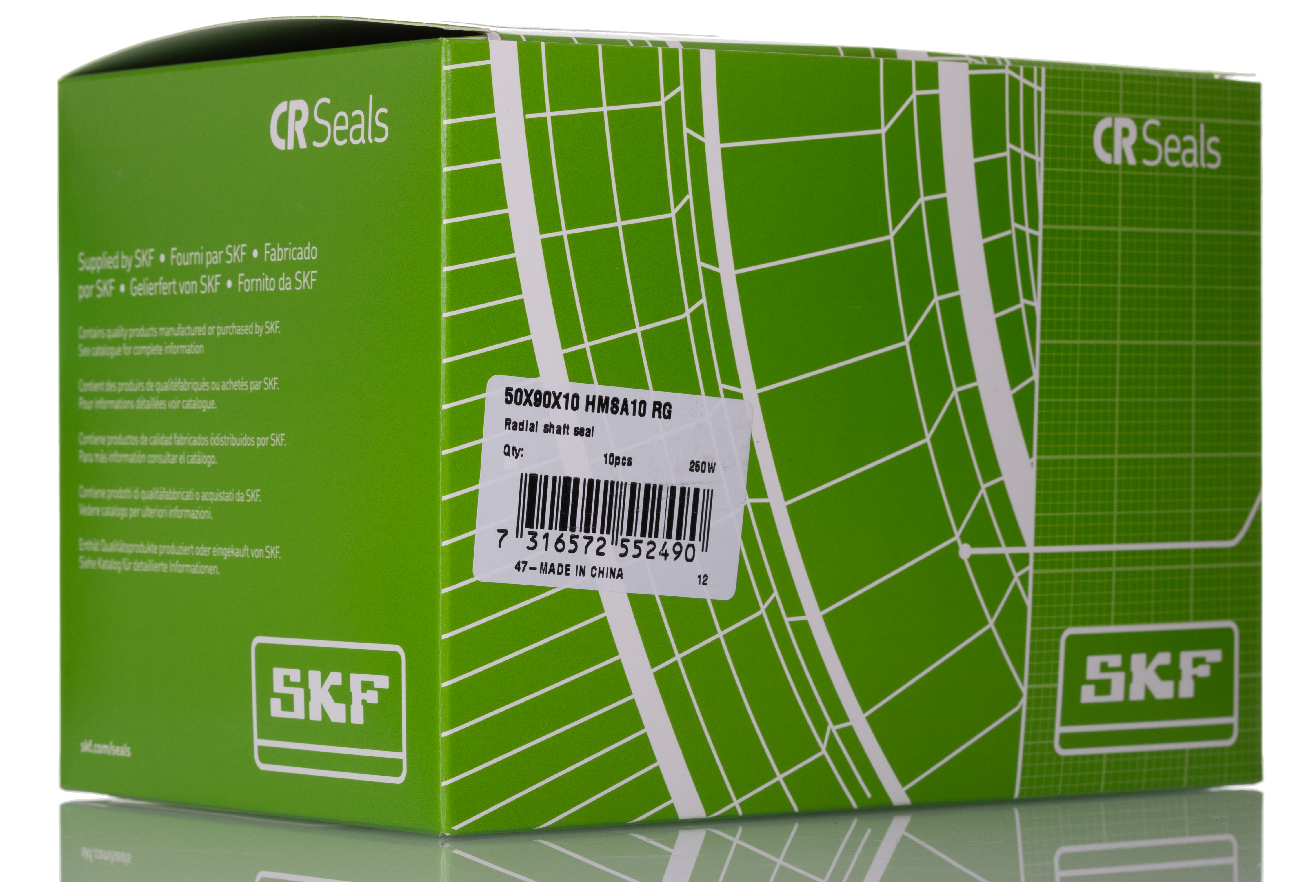 This is Seal 50mm ID 90mm OD 10mm manufactured by SKF. The manufacturer part number is 50X90X10 HMSA10 RG. Whereas, the minimum operating temperature of the product is -40°c. Moreover, its inside diameter is 50mm. It is 10mm thick. The product has 90mm external diameter. It has a/an rotary shaft seal type seal . Its seal is made using nitrile rubber material . It has a maximum operating temperature of +100°c.