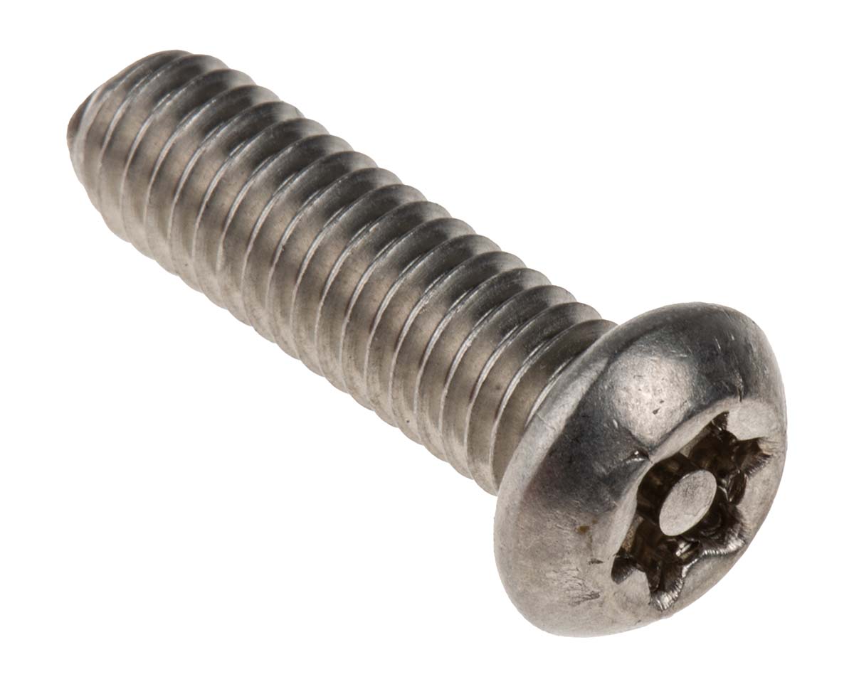 This is Plain Button Stainless Steel Tamper Proof Security Screw M6 x 20mm manufactured by RS Pro. The manufacturer part number is 621-2710. A quality product with a nice plain finish. The head has a button shape. The product features a pin hex recess drive. The product is made from highly stable and reliable stainless steel. It has a typical thread size of m6. Its accurate length is 20mm. The stainless steel is a a2 304.
