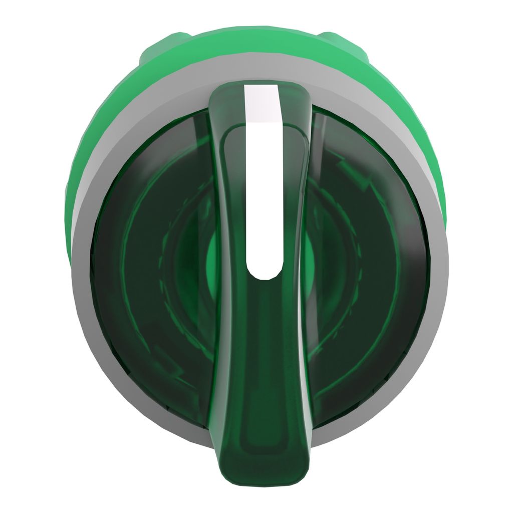 This is ZB5 Series 3 Position Selector Switch Head 22mm Cutout Green Handle manufactured by Schneider Electric. The manufacturer part number is ZB5AK1533C0. The actuator has an adorable green colour. Illumination Option yes. The product zb5, is a highly preferred choice for users. The product carries possible position value of 3. The product carries knob actuator. Whereas its cut-out diameter is 22mm.
