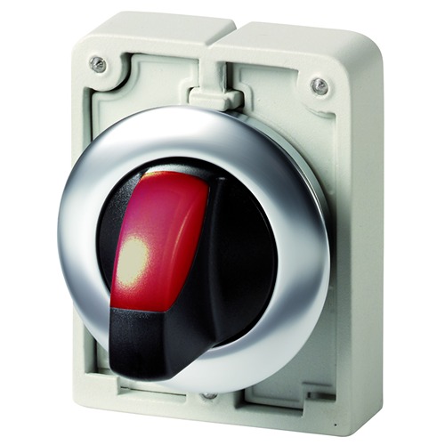 This is Toggle Selector Switch - 30mm Cutout Diameter Illuminated 2 Positions manufactured by Eaton. The manufacturer part number is 188079 M30I-FWRLK-R. It has a selector switch complete unit . Illumination Option yes. It is IP rated with ip66. The product carries toggle actuator. Whereas its cut-out diameter is 30mm. The product carries possible position value of 2.