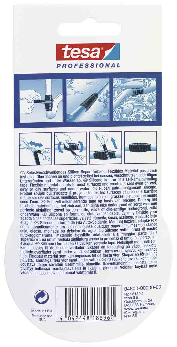 This is 4600 Transparent Self Amalgamating Tape 25mm x 3m manufactured by Tesa. The manufacturer part number is 04600-00000-02. Whereas, its backing is made using silicone rubber material . In addition, it has a standard 8000v breakdown voltage . It has a model number 4600. It is 0.5mm thick. Furthermore, the product is 25mm wide. Its accurate length is 3m. Whereas, the minimum operating temperature of the product is -60°c. The product has an added tensile strength of 33n/cm. It has a maximum operating temperature of +260°c. It has a decent transparent colour.