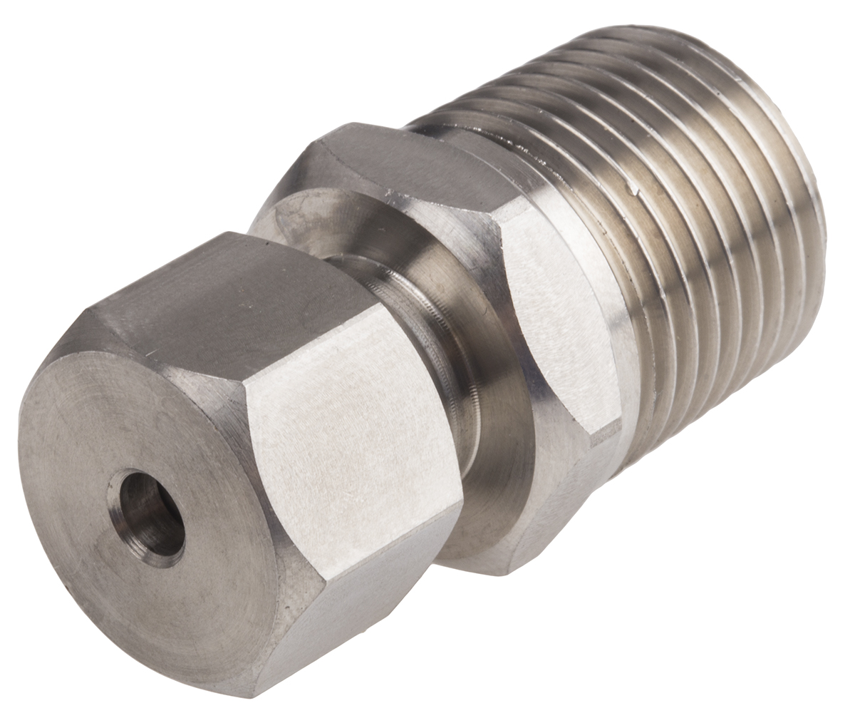 This is Gland for use with Temperature Sensor 1/2 BSPT Plug manufactured by RS Pro. The manufacturer part number is 286-787. The product complies with all safety standards, such as rohs compliant. Its probe diameter is about 4.5mm . The product is made from highly stable and reliable stainless steel. It is a type of compression fitting accessory. screw Connector type offer robust functionality. Applications Information involves 1/2 bspt x 4.5mm compression fitting. The connector comes in male. The product is highly suitable for thermocouple or prt probe. The connector has 1/2 bspt size.