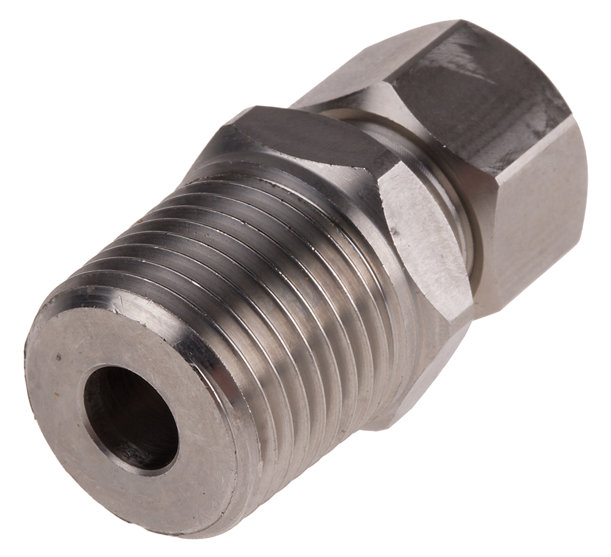 This is Compression Gland 8mm for use with Thermocouple 1/2 BSPT manufactured by RS Pro. The manufacturer part number is 839-9550. The product complies with all safety standards, such as rohs compliant. Its probe diameter is about 8mm . The product is made from highly stable and reliable stainless steel. It is a type of compression fitting accessory. screw Connector type offer robust functionality. Applications Information involves 1/2 bspt x 8.0mm compression fitting. The connector comes in male. The product is highly suitable for thermocouple or prt probe. The connector has 1/2 bspt size.