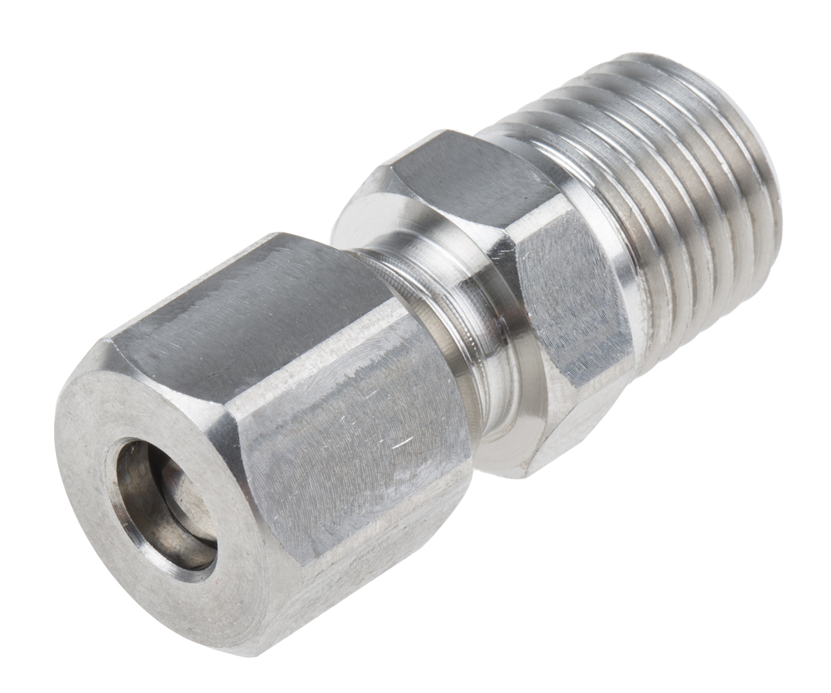 This is Compression Gland 1/4in for use with Thermocouple 1/4 NPT manufactured by RS Pro. The manufacturer part number is 123-5575. The product complies with all safety standards, such as rohs compliant. Its probe diameter is about 1/4in . The product is made from highly stable and reliable stainless steel. It is a type of compression fitting accessory. screw Connector type offer robust functionality. Applications Information involves 1/4 npt x 1/4 compression fitting. The connector has 1/4 npt size. The connector comes in male. The product is highly suitable for thermocouple or prt probe.