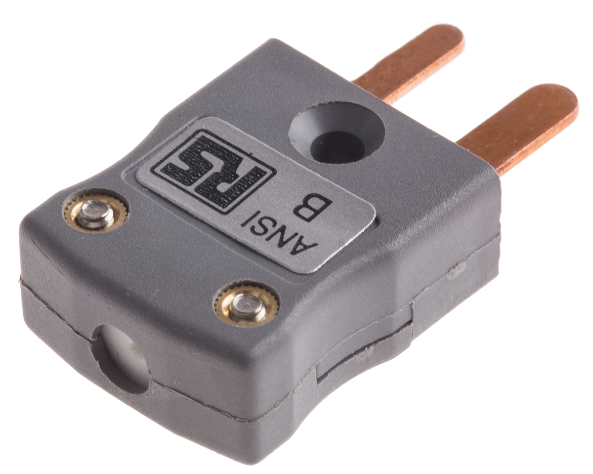 This is ANSI Miniature In-Line Plug Connector for use with Type B Thermocouple manufactured by RS Pro. The manufacturer part number is 769-1094. The product has 220°c maximum temperature. The product complies with all safety standards, such as ansi, rohs compliant. Its probe diameter is about 4mm . It is a type of thermocouple connector accessory. flat pin Connector type offer robust functionality. Applications Information involves miniature connector. It comprises a plug. Additionally, its thermocouple is of b type . The connector has miniature size. The connector comes in male. While its minimum temperature is -35°c. The product is highly suitable for type b thermocouple.