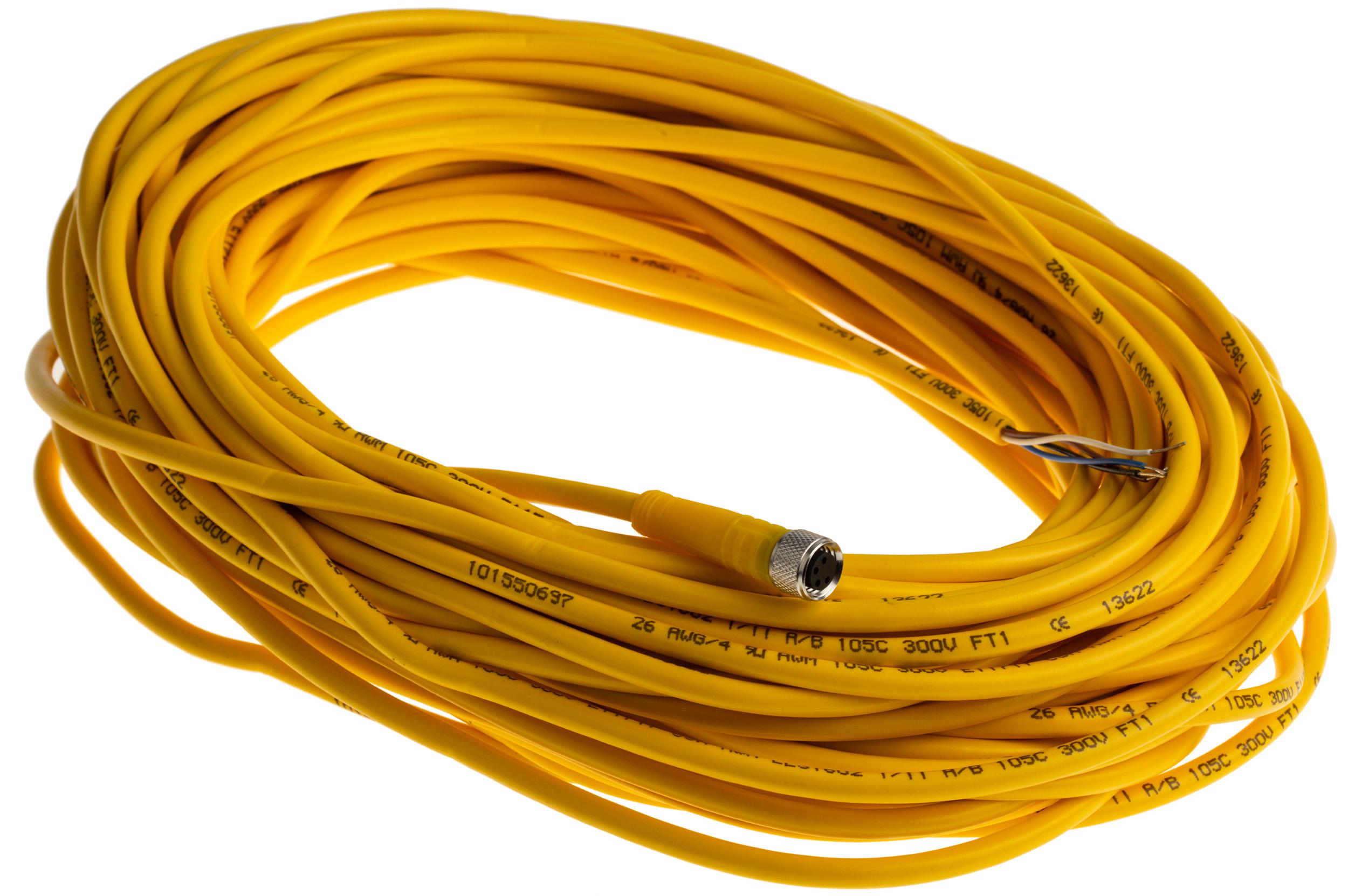 The Turck PKG 4M 20 is a rugged 20 metre, 4 core sensor actuator cable featuring a high visibility yellow PVC sheath and a reliability focused M8 female straight connector. Engineered for demanding industrial environments, this cordset delivers dependable signal integrity and durable performance while meeting stringent safety and environmental standards.